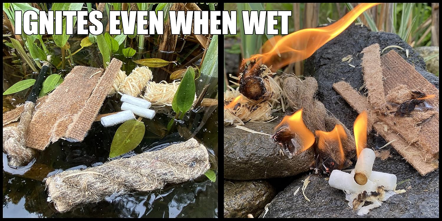 - Weatherproof & Durable – Waterproof components like compressed tinder ensure reliable ignition even in wet conditions.