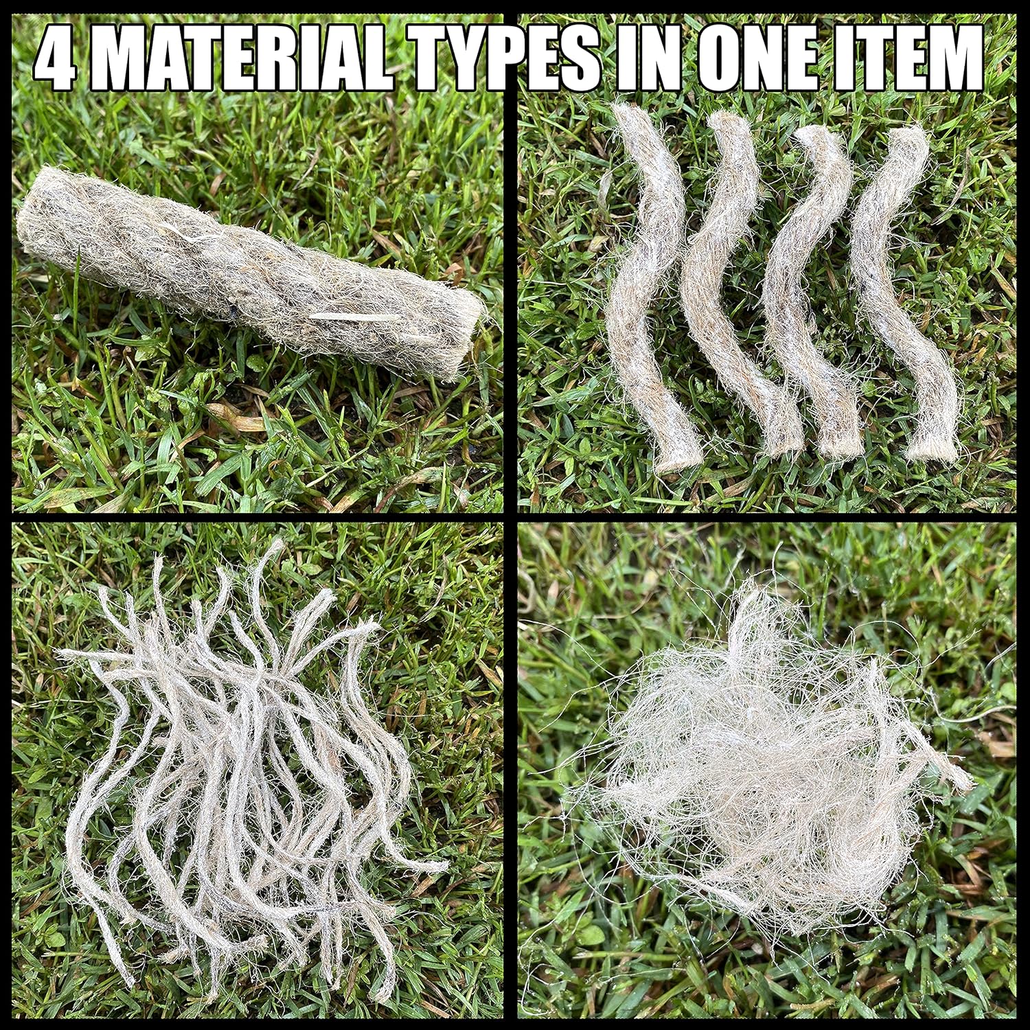 | Material | Cotten Plugs, Hemp Wick, Fat Rope, Dried Tinder Sticks, Tumble Weed Tinder, Char Cloth |